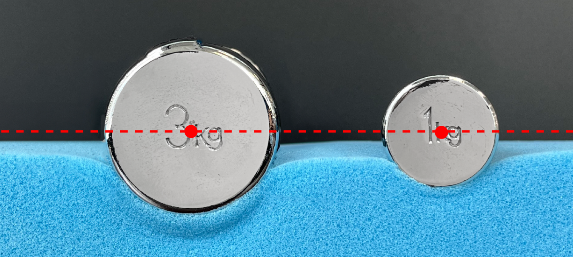 優反発は重さ・大きさによって反発力が変化するため沈み具合が一定に。